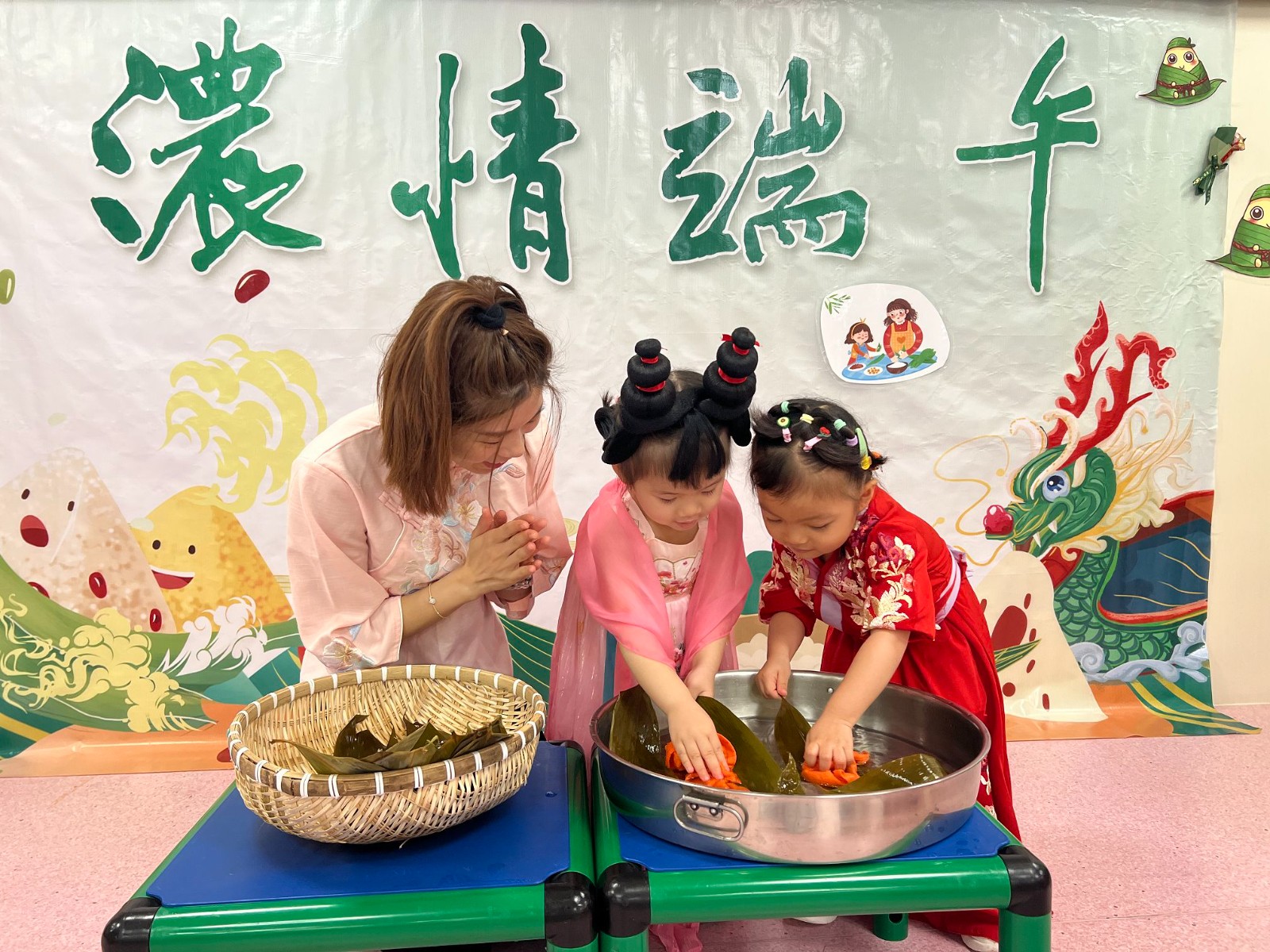 3、端午節、中秋節---邀請家長和幼兒們穿漢服過傳統節日,培養審美情趣和興趣。